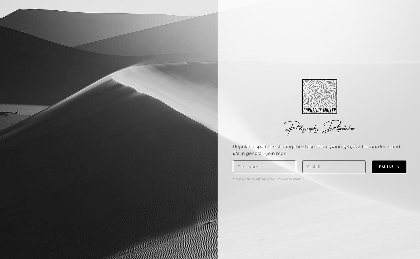 You’ll be automatically transferred / subscribed to Photography Dispatches (you can unsubscribe at any time, no hard feelings)